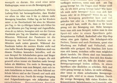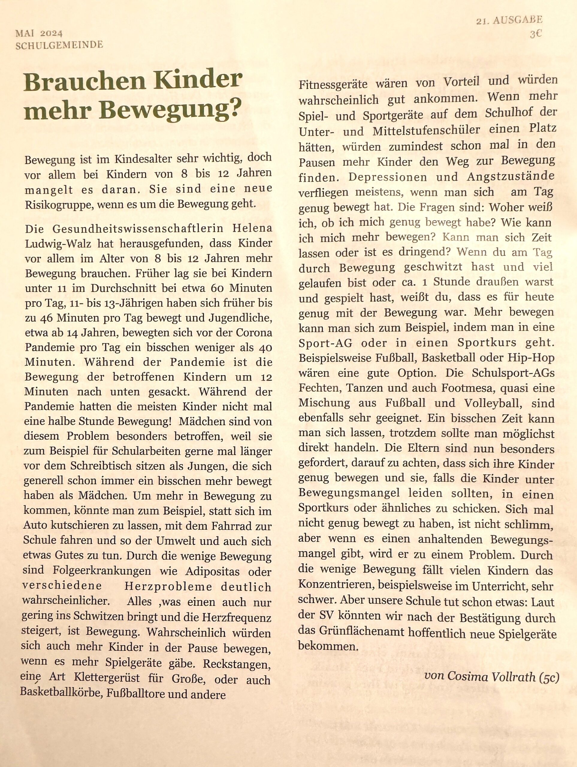 Gleich mit ihrem ers­ten Arti­kel für unsere Schü­ler­zei­tung ist Cosima Voll­rath ein beein­dru­cken­der Erfolg gelun­gen. Wir freuen uns auf wei­tere Texte die­ser talen­tier­ten Schrei­be­rin in der nächs­ten Ausgabe.