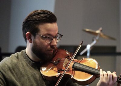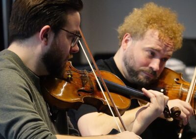 Neben solchen „Klassikern“ haben sich die vier Münchner Musiker auch dem Alpenländischen Volksmusikton verschrieben. Davon zeugten die hier zu Gehör gebrachten Musikstücke „Augenstern“ und „Diplomlandler“, die auch auf der jüngsten CD des “Goldmund Quartetts” mit dem Titel „Dahoam“ (2025) enthalten sind.