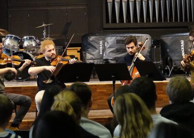 Zwischendurch nahmen sich die Musiker auch viel Zeit für die Fragen der Zuhörer/innen, die sich zumeist um das Leben als professionelle Künstler drehten.