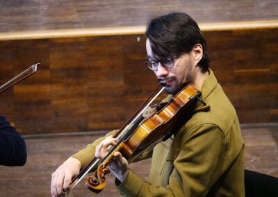 Höhepunkt des Konzerts war die perfekt aufeinander abgestimmte Interpretation der ersten beiden Sätze von Schuberts berühmtem Streichquartett Nr. 14 in d‑Moll, das den Beinamen „Der Tod und das Mädchen“ trägt. Hautnah konnte das Publikum die aufwühlenden Gegensätze von unermesslicher Tragik und lyrischer Feinsinnigkeit miterleben.
